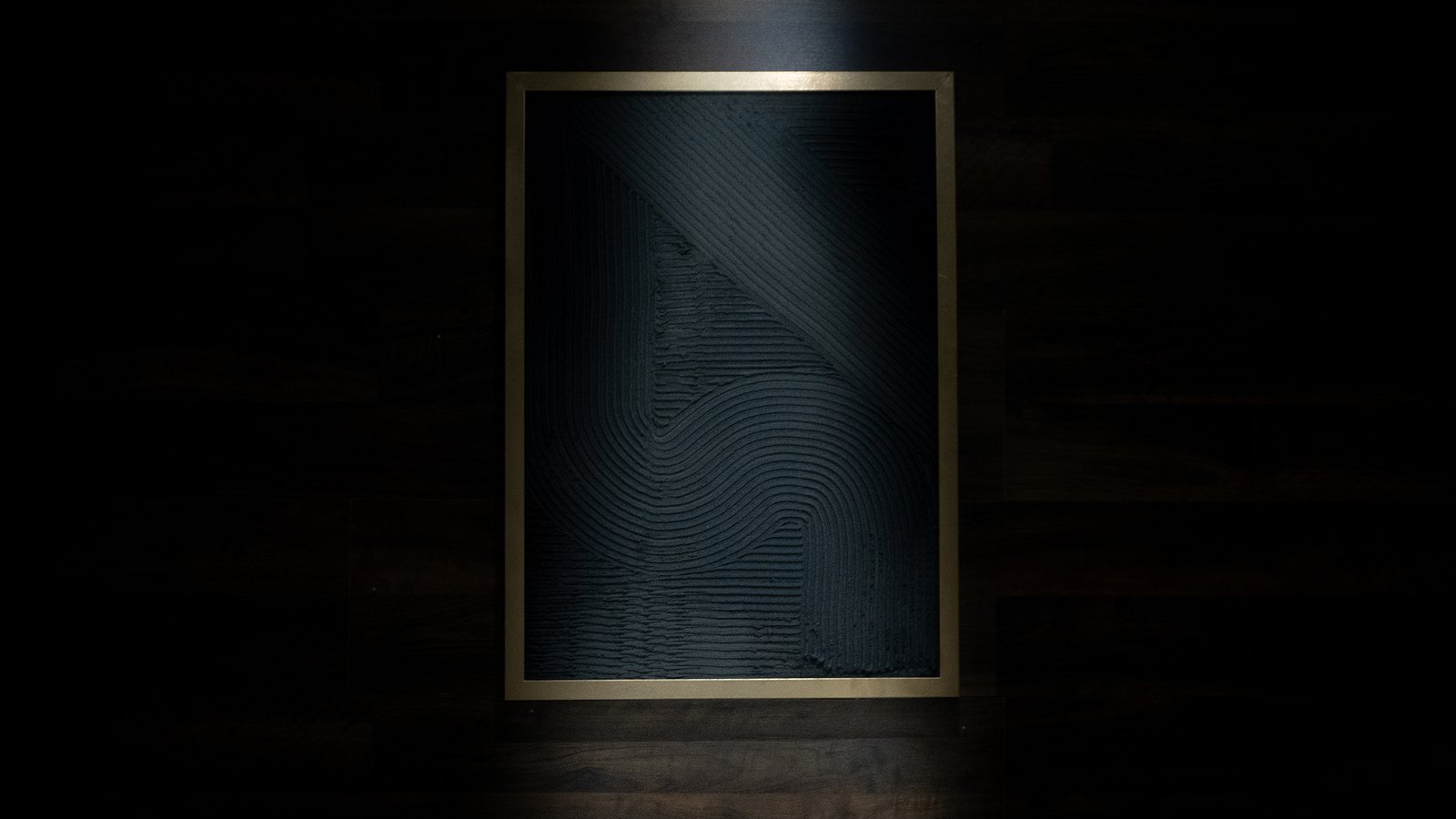 The board was then sealed within a custom gold-leaf frame, chosen not to beautify but to sanctify. The perimeter doesn’t interrupt the raw tactility, it encases it, transforming tool marks into relic, repetition into ritual.